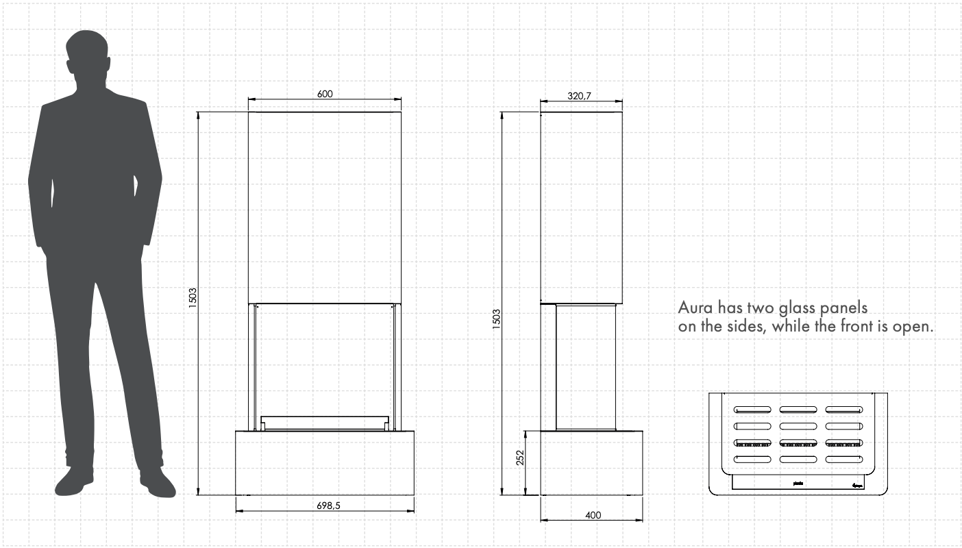 Aura wykorzystuje technologię Optimist, która tworzy iluzję ognia z pary wodnej i światła, natomiast Vertis posiada naszą flagową technologię BEV, zapewniającą prawdziwy płomień zasilany bioetanolem.