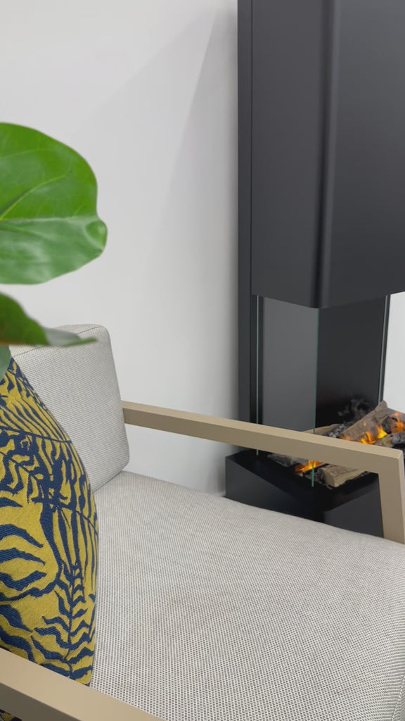 • Trójstronny widok efektu ognia robi wizualne wrażenie i staje się centralnym punktem pomieszczenia.