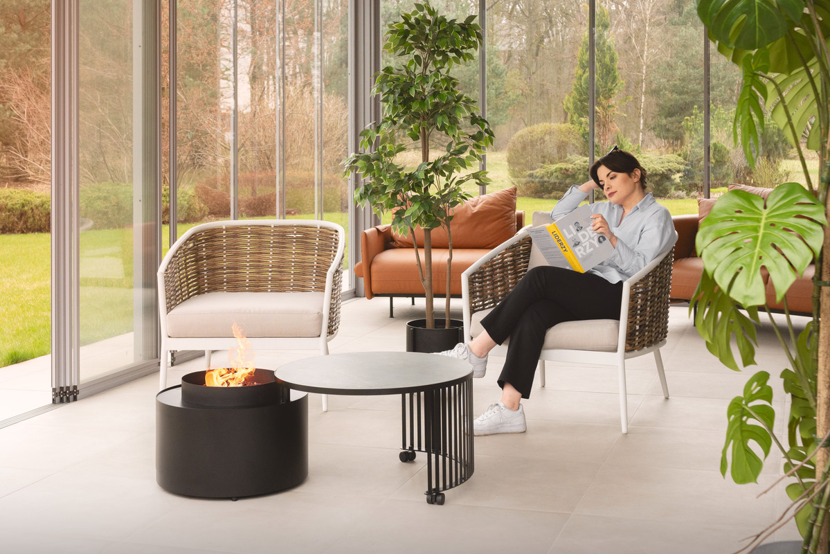 Zmień swój wypoczynek na zewnątrz z kominkiem gazowym 2w1 Moon od Planika